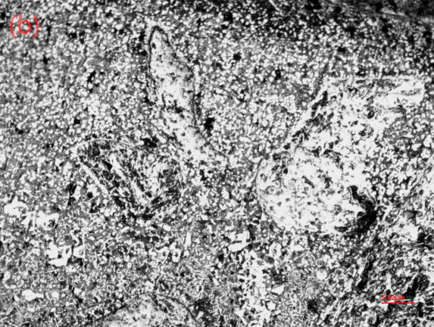 2.热工艺在表面加工过程(电流)的控制。TIG焊电流越高,温度越高。如果堆焊温度非常高或铺设速度太慢,则可能发生碳化钨和碳化钒颗粒的熔化和分解,表面层会发生剥离和腐蚀,并容易产生毛孔。此外,高温还会导致铸造碳化钨颗粒的沉积。如果碳化钨和碳化钒颗粒分布不均匀并且基底金属表面过多,则焊接涂层的耐腐蚀性将会降低。不过,如果温度太低或表面速度太快,则熔融基地金属的流动性会降低,而且表面层不均匀,表面层对基体材料的粘附性会降低,甚至出现未熔合的缺陷[4]。在确保沉积金属在表面处理过程中与基材结合的前提下,碳化钨颗粒铸件和碳化钒应尽可能保持原始形状并应尽可能广泛地保持并尽可能均匀地分布在基体中。因此,必须小心控制堆焊电流和堆焊速度。在表面处理过程中,熔池温度应控制在母材金属的熔化温度以上。必须控制堆焊速度以在热源的前端具有熔融的基础材料。