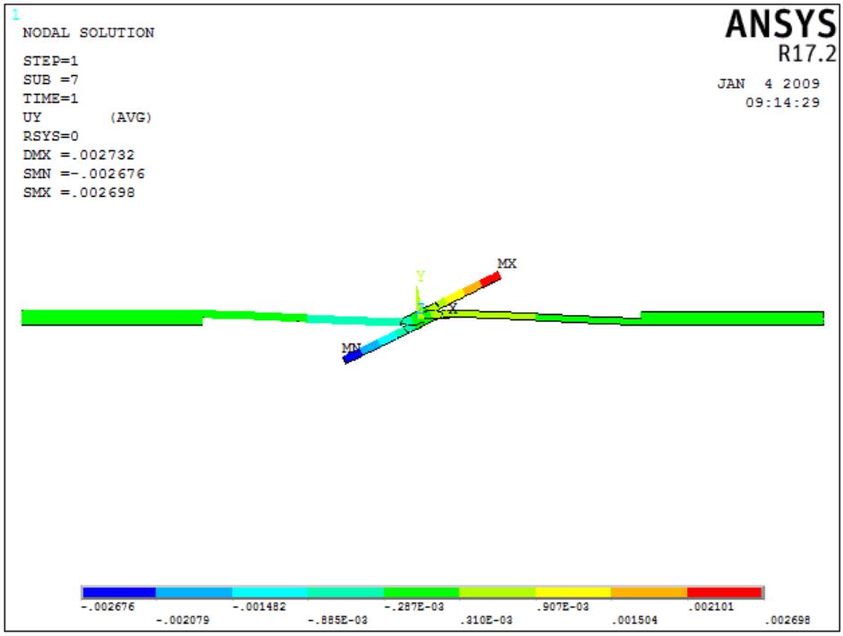 论文得到了点焊接头在施加载荷时的应力和位移云图,探究了熔核和塑性环尺寸,搭接长度对超高强钢点焊接头强度的影响,获得了等效应力的分布曲线。同时,也分析了最大应力产生的位置,同一结构在不同载荷下的应力情况等。