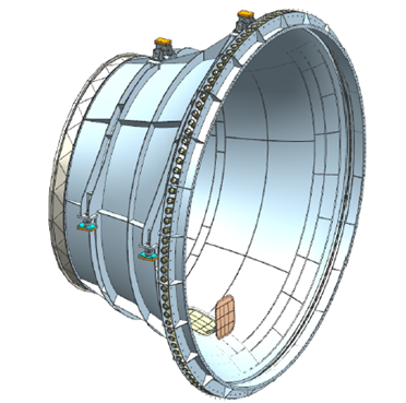 本文主要进行薄板GMAW焊对接接头的焊接变形预测,研究对象为一大型压力容器壳体,整个壳体由多块板拼焊而成,其实体示意图见图1.1。本研究对其中两块板的拼焊过程进行模拟,由于每块板材尺寸较大从而其弯曲程度较小,故提取出的有限元模型为两平板对焊模型,每块平板的尺寸为160×100×16mm。壳体所用材料为304L不锈钢(00Cr19Ni10)。