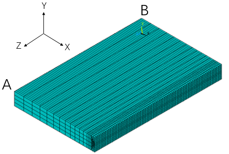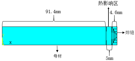 对于对称结构可运用其对称性来简化模型,故在建模时仅建立一半模型,包含一块板材及半部分焊道。