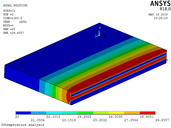 在温度场计算中采用八节点六面体热分析单元(SOLID70),它是三维六面体单元,可进行三维热传导。