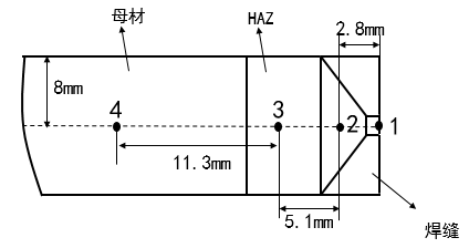 为便于划分网格,建立有限元模型时需建立多个长方体分别表示母材,焊接热影响区及焊缝,焊缝处要将各焊道分开创建,最后将所有的体用命令粘在一起,模型截面情况见图2.3。