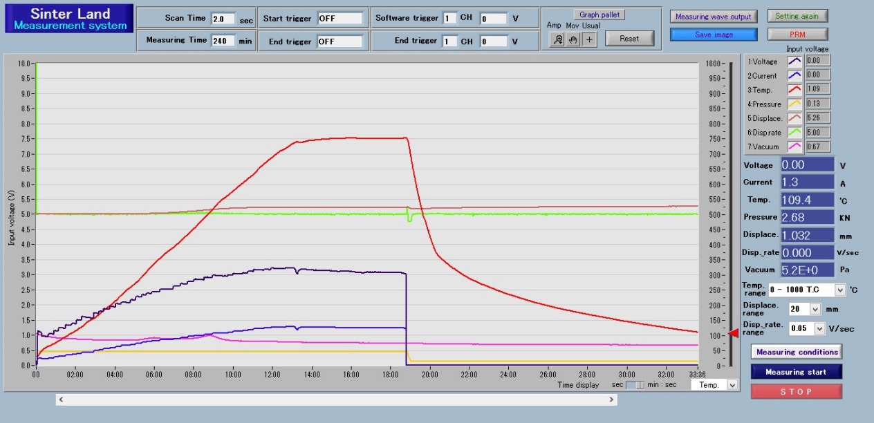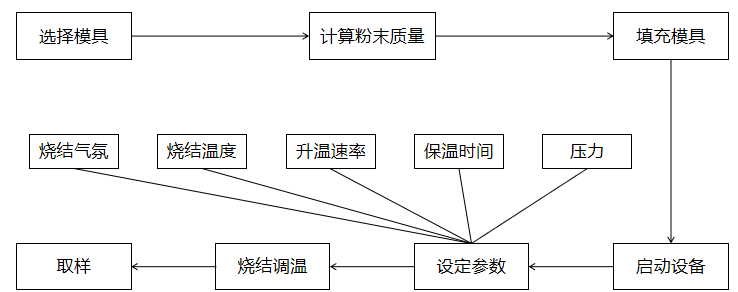 图2.1显示的是SPS装置的示意图,主要包括轴向压力装置、水冷冲头电极、真空腔体、气氛控制系统(真空、氩气)、直流脉冲及冷却水、位移测量、温度测量、和安全等控制单元。