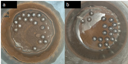 在球磨的初始阶段,经过周而复始的一系列挤压、破碎、焊合、再挤压物理过程,粉末形成层状的复合颗粒。复合颗粒再次在球磨机械力的周而复始的作用下,不断产生新原子面,进一步导致层状结构不断细化。在球磨过程中,球-粉末—球之间发生了大量的的碰撞。粉末在磨球中间,受到碰撞球的“微型”锻造作用,从而导致粉末发生了严重的塑性变形。
