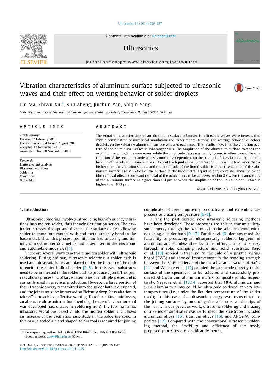 L. Ma et al. / Ultrasonics 54 (2014) 929–937 |