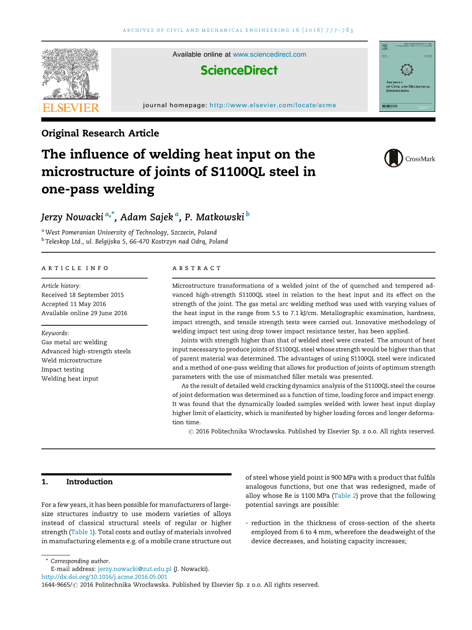 Jerzy Nowacki a,*, Adam Sajek a, P. Matkowski b