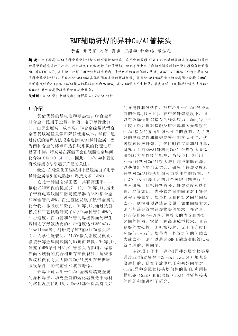 EMF辅助钎焊的一种Cu/A1管接头外文翻译资料