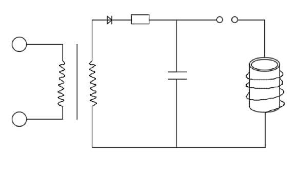 通过尚静等研究人员对电磁成形原理的研究[1],得知电磁成形的原理如图1.1所示,首先电容器先将事先储存好的电能释放出来,在回路中形成电流,在电容器和线圈的共同作用下,在线圈的周围会产生脉冲的磁场,因为磁通量的变化会使零件中产生感应电流,感应电流还会在磁场中受到洛伦兹力的作用。当电压达到一定程度时产生的洛伦兹力超过金属的极限屈服强度时就会使金属工件产生塑性变形,以达到成形金属零件或控制弯曲件回弹等目的。