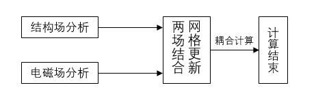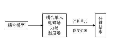 直接耦合法是电磁成形模拟中最简单的算法,如图1.2所示即为其算法的原理流程图。说其是简单的算法是因为在划分网格单元时,可以将所有的物理场都囊括在其中,所以在模拟计算时只需要进行一次计算,就可以得到多种物理场共同作用的结果。