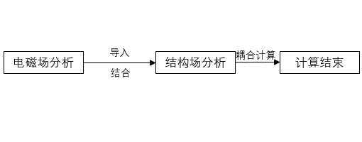 松散耦合法相对于直接耦合法来说模拟计算结果更加精准。如图1.3所示为该算法的原理流程图,首先单独的对电磁场进行计算分析,得到了电磁场的数据后将该数据导入到模型的结构场当中,与该模型的结构场相结合来模拟计算工件的变形情况。松散耦合法相对于直接耦合法来说,考虑了电磁场和结构场之间的联系,但是这种联系却不是实时的联系,松散耦合法在计算的过程中自动忽略了模型因为形变导致磁场发生变化这一结果,所以造成计算结果在有些模拟中并不符合真实情况。在国内松散耦合法主要应用在对于平板成形和管件成形的松散耦合研究中。