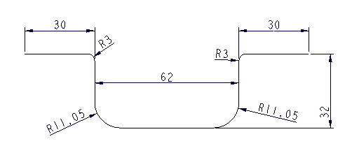 板料冲压预变形是比较传统的成形工艺过程,没有电磁辅助成形过程,所以建立的模型相对来说较为简单,本次实验与刘大海博士所做的铝合金弯曲回弹实验做模拟进行对比研究[7]。所以设置矩形板料的尺寸如下:宽为40mm,长为150mm,厚度方向为1mm。根据目标零件的形状来设计冲压预成形模具的尺寸,利用Proe软件对设计好的模具进行几何建模,建模后凸凹模的尺寸如图2.1、2.2所示。
