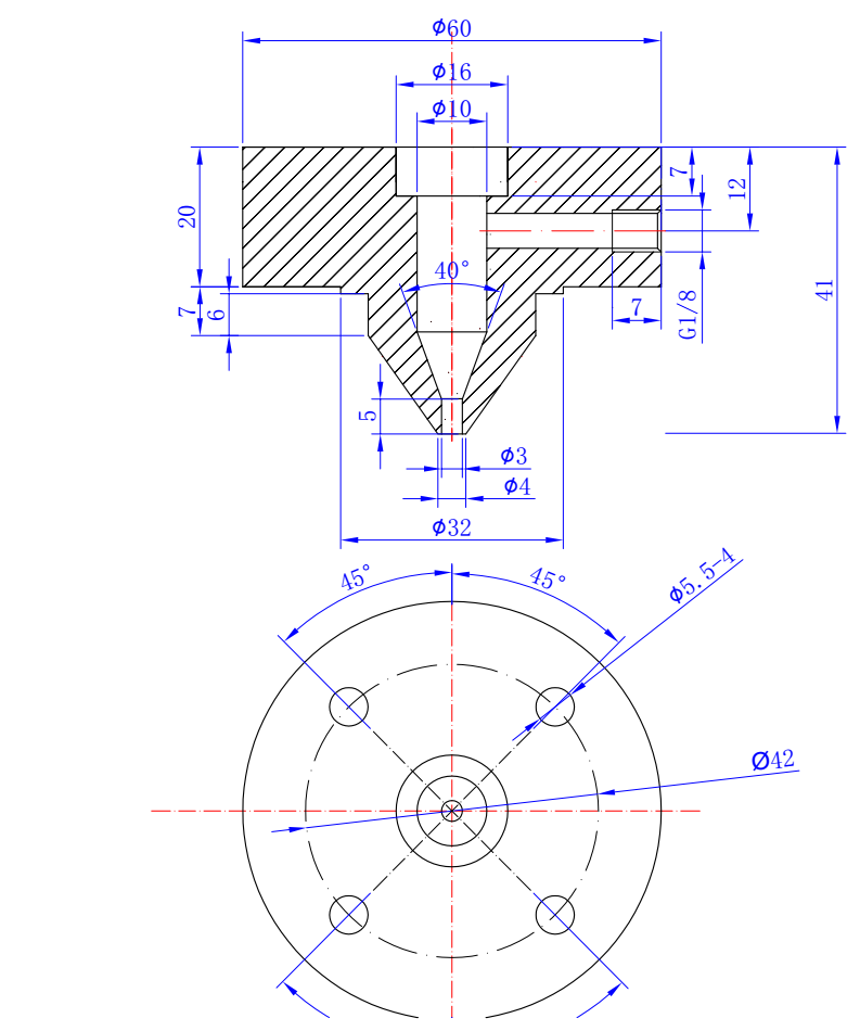 通过实验数据对比,使生产出的即震式滴头能满足最高的工作效率,确定滴头顶部、中部以及底部各位置的具体尺寸,得出滴头最终的形状规格,设计图纸,并投入生产使用。