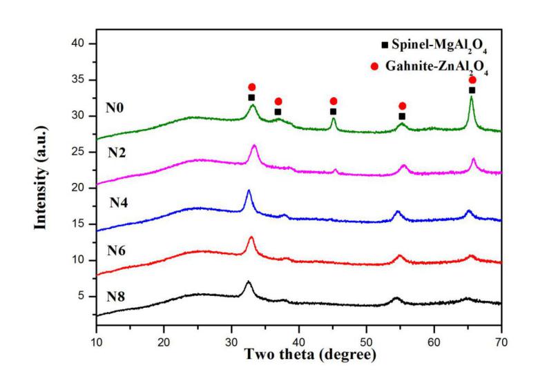 In this paper, transparent Na2O-MgO-Al2O3-SiO2 glass-ceramics with different contents of Nd3 ion were prepared by integral crystallization method, and their structure and optical properties were studied by Differential Scanning Calorimeter (DSC), X-ray Diffraction (XRD), Scanning Electron Microscope (SEM), UV-VIS-NIR and Fluorescence Spectrum. The results showed that:(1) the main crystal phase of glass-ceramics were aluminum-spinel and zinc-aluminum spinel crystals. Increasing the heat treatment temperature or prolonging the heat treatment time at a certain temperature can promote the crystallization of glass-ceramics, and Nd3 ions doping hindered the precipitation and growth of spinel crystals. (2) The absorption peaks appeared at 585 nm, 747 nm and 805nm.The intensity of these absorption peaks increases with the increase of neodymium doping. In the absence of leakage, the higher the heat treatment temperature is or the longer the heat treatment time is, the higher the absorption peak of 747nm and 805nm is, and the higher the heat treatment temperature is or the longer the heat treatment time is. The intensity of absorption peak decreased. Heat treatment can reduce light transmittance, especially in the range of wavelength 400~700nm. (3)At the same doping amount, the fluorescence peak of the heat-treated glass-ceramics is stronger than that of the original glass. When the content of Nd3 is below 0.4 mol%, the stronger the fluorescence peak is with the increase of Nd3 content, and when the content of Nd3 is more than 0.6 mol%, the intensity of luminous peak decreases with the increase of doping content. The heat treatment temperature is higher or the heat treatment time is longer, the higher the 1060nm luminous peak intensity is and the lower the luminous peak intensity of glass-ceramics is.