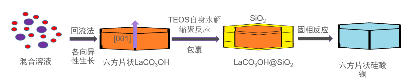 In this paper, lanthanum hydroxide grown in the c-axis orientation was prepared by melt-salt method, followed by hydrolysis and polycondensation of tetraethyl orthosilicate in alkaline condition, and the SiO2 was encapsulated on the surface of lanthanum hydroxide. Finally, The lanthanum lanthanum was prepared by solid phase reaction.