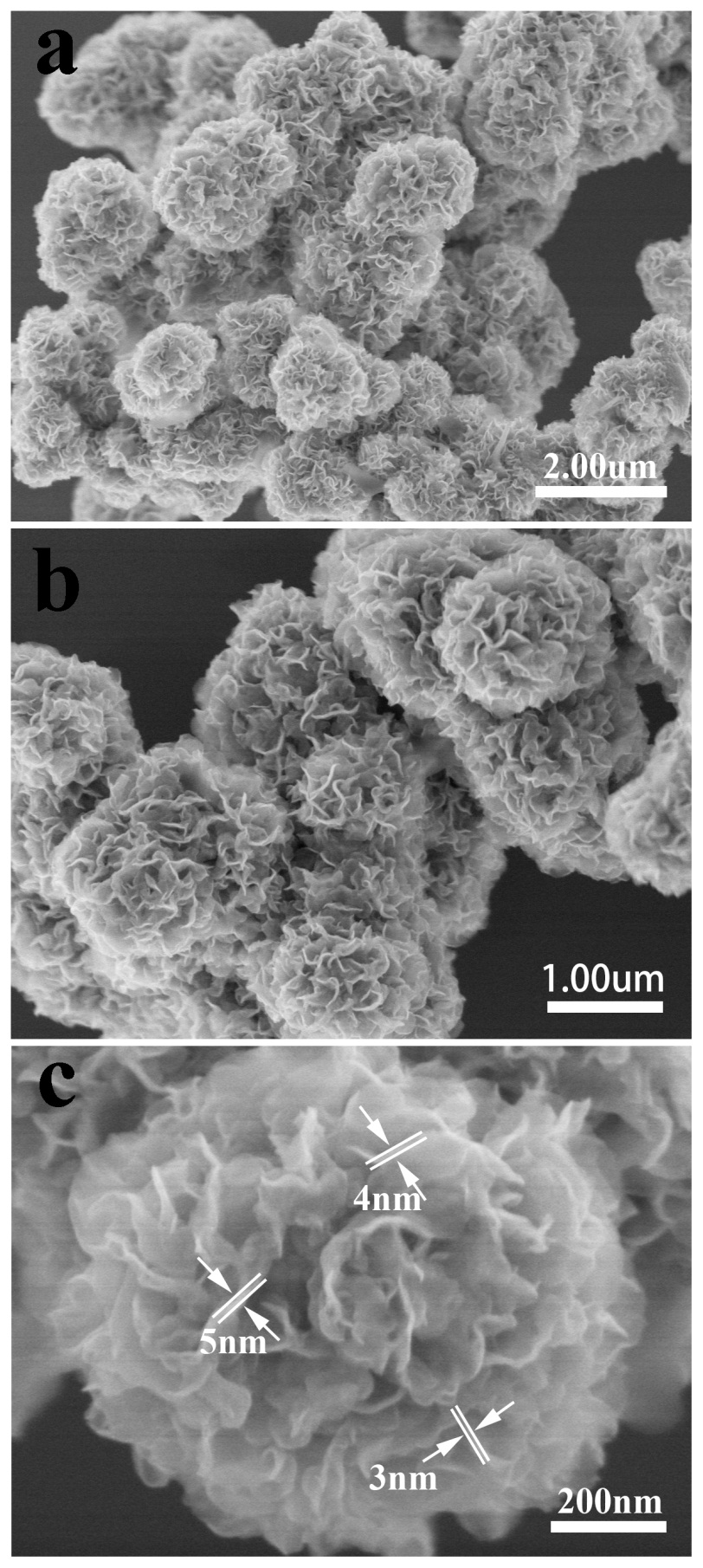 氢气是一种清洁燃料,由于其高热值和环境友好性,未来将被视为传统化石燃料的潜在的替代品。电催化析氢反应(HER)是生产氢的最重要的方法之一,可以有效地储存来自太阳能等可再生能源的能量,但受到Pt基贵金属催化剂的天然稀缺性和高成本的限制。因此,越来越多的科研工作者注意到非Pt阴极催化剂。近年来,基于MoS2的电催化剂由于其低成本以及与Pt相似的氢原子结合能,具有高的HER活性,引起了人们的关注。然而,MoS2纳米片易于团聚,导致活性位点的减少和催化性能的降低。因此,本文通过CS2辅助水热法成功制备了由二维MoS2纳米片构成的三维(3D)空心纳米球,“钼进入反应”机制可以得到了丰富的缺陷。由一系列少数几层的,缺陷丰富的MoS2纳米片构成的三维结构可以保持纳米片大量暴露的活性位点,并防止纳米片聚集,同时3D纳米结构有利于电解液渗透的介孔,故具有优异的催化性能。