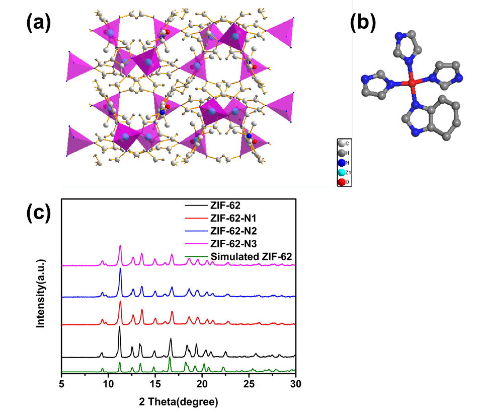 最近,一些研究者报导了ZIFs作为锂离子电池正极材料表现出优异的电化学性能,并证实了ZIFs材料中氮官能团储锂的反应机理。目前,很少有ZIFs材料作为锂电池负极的储锂机制的研究,因此,本文以ZIF-62及氮元素掺杂ZIF-62负极材料作为研究对象,探索锂离子是否储存在ZIF-62的氮位点上。