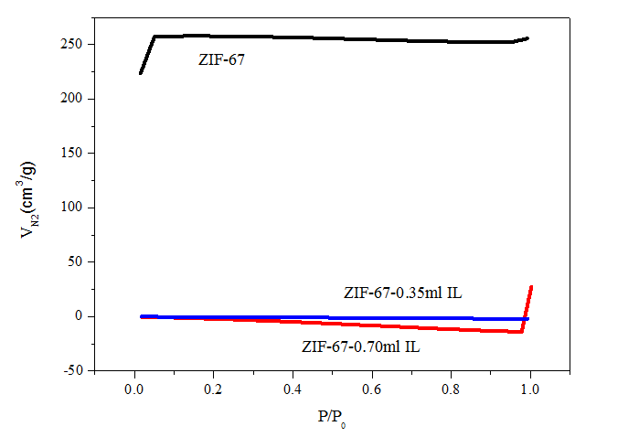 (1)通过溶剂法制备了沸石咪唑酯骨架结构(ZIF)材料,浸润离子液体之后,与PEO复合制备出了复合固态电解质。