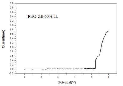 (2)复合的固态电解质的离子电导率等性能比纯的聚合物固态电解质离子电导率和纯的ZIF电解质的离子电导率高出许多,高温时则高出更多。电压窗口比起单种材料有所提高;此外,还具有很好的循环性能。