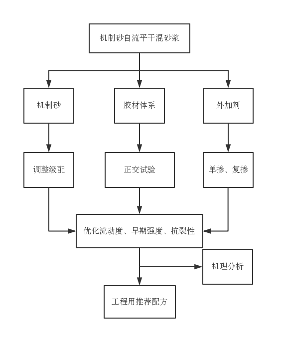 Key words: manufactured sand, self-leveling mortar, fluidity, early strength, crack resistance