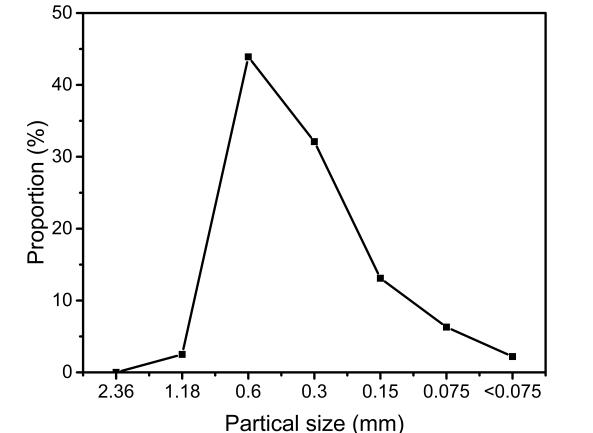 目前国内外的学者研究发现机制砂和天然砂在干混砂浆中的表现不同,机制砂取代天然砂不会影响砂浆的凝结时间,会给砂浆的抗压强度、保水性和拉伸粘结强度等性能带来增益,但机制砂的引入会导致干混砂浆需水量的增大,稠度降低[2]。同时取代比例的多少也会影响砂浆性能,机制砂替代 50%的天然砂相比全天然砂自流平砂浆可以取得更高的强度[3]。而且机制砂的形状与石粉含量对砂浆性能也有深远的影响,机制砂颗粒越接近于圆形,石粉含量控制在7%-10%甚至更高,砂浆的流动性越好[4,5]。根据Weiguo Shen等人的研究,机制砂的形状对砂浆性能的影响较小,机制砂的级配对砂浆强度的影响次于机制砂中石粉含量对砂浆强度的影响,当石粉含量为7.5%时,砂浆的抗折抗压强度最大[6]。同时,机制砂的颗粒级配对砂浆性能的影响也不容忽视。近年来有研究表明机制砂的细度模数并不能很好地表征机制砂的品质,需要采用二级配法将机制砂按照1.18mm的粒径分为Ⅰ组(粒径≥1.18mm)和Ⅱ组(粒径≤1.18mm)两档,然后按比例配制机制砂的级配。其研究表明当4.75mm、2.36mm、1.18mm三挡的累计筛余控制在2:3:1时混凝土的综合性能最优[7]。