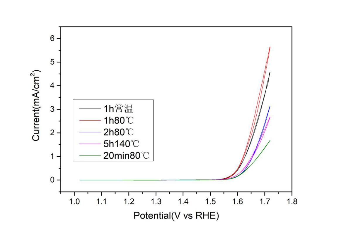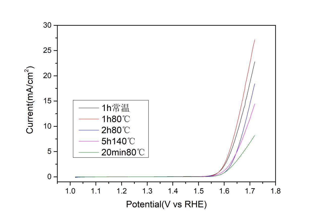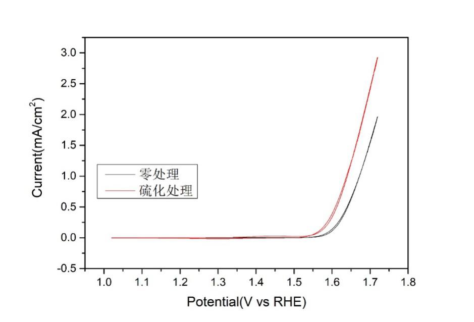 (3)Changing the sodium sulfide solution at different concentrations, the results showed that the powder obtained by treating 0.05mol/L sodium sulfide solution had better catalytactivity than the sample treated with 0.1mol/L sodium sulfide solution, and had higher current density and lower Starting potential.