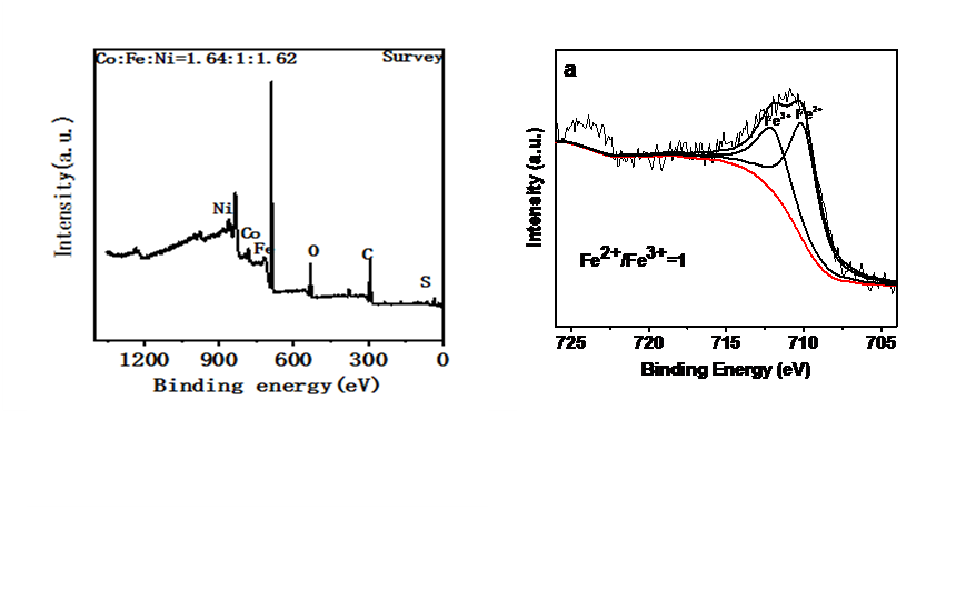 (2)We treated FeCoNi ternary alloy powder with sodium sulfide solution as sulfur source. The composition characteristics of the samples were characterized by XRD and XPS spectroscopy,and the structural characteristics of the samples were observed by SEM. The effect of sodium sulfide solution treatment on the catalytic performance of the sample was investigated by electrochemical test.