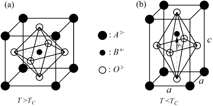 PZT是一种典型的ABX3型钙钛矿结构化合物,其中A代表Pb2 ,B代表Zr4 和Ti4 ,X代表O2-。如图1所示,半径较大的Pb2 占据了晶胞的八个角,Zr4 和Ti4 则位于晶胞的中心位置,而O2-则是在六个面心的位置。如图1.1所示。[1]