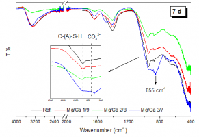 In this paper, the mechanical properties of low-carbon cementitious materials modified by magnesium ion doping are studied. Magnesium ion is used as a stabilizer to regulate the phase reconstruction process of amorphous calcium carbonate formed in the early stage of carbonate activated low-carbon cementitious materials. The important role of amorphous calcium carbonate (ACC) in carbonate activated slag cement cementitious materials is studied. The reaction process and products of NaCO3 activated slag were studied by isothermal calorimetry, infrared spectrum, X-ray diffraction, TG DTA and SEM. Through the above tests, it was found that C- (A) -S-H gel began to gel at about 2D after casting, and the accumulation of sodium calcium and the formation of hydrotalcite played an important role in reducing CO32- anion, leading to the formation of C- (A) -S-H gel. The ratio of water to solid was the determining factor of compressive strength, and the linear relationship between initial alkali concentration and compressive strength at different ages was obtained.