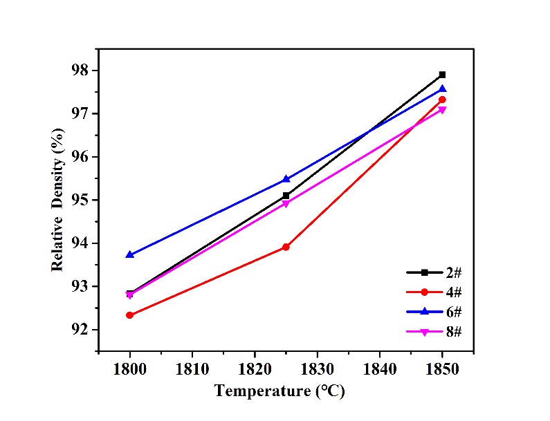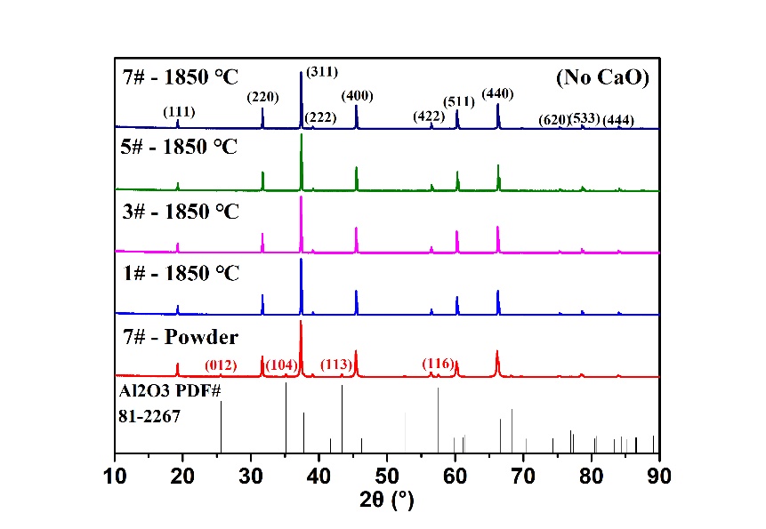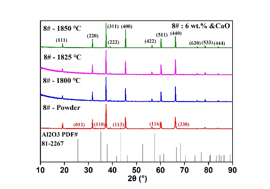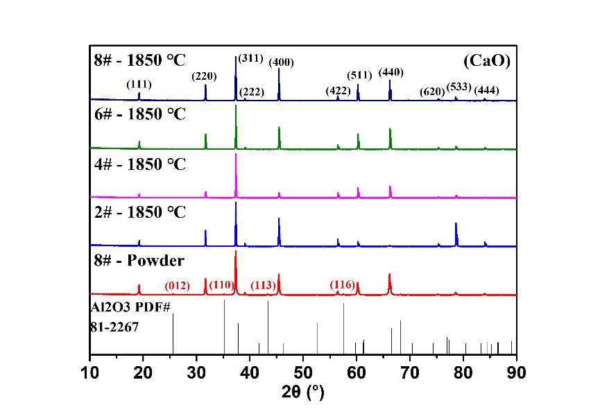 本研究制备了不同Al2O3含量,相同CaO含量样品,并以仅添加Al2O3的样品作为对照组进行试验,在不同预烧温度下,各样品表现出不同的烧结行为。在低氧化铝含量以及较高预烧温度下,加入CaO能有效促进样品烧结致密化过程。