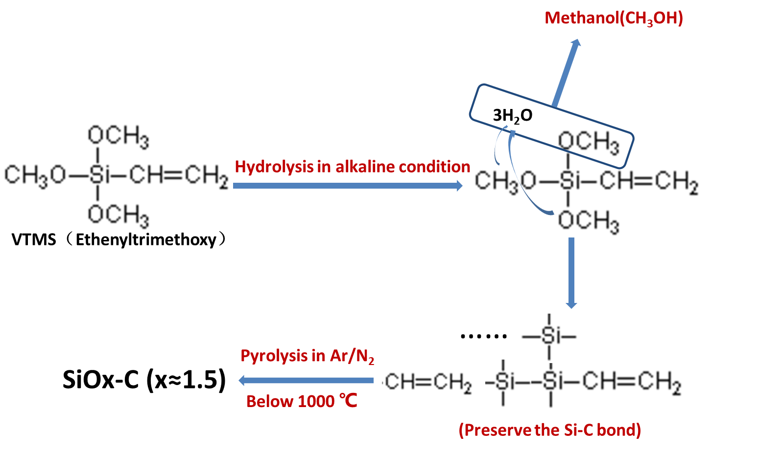 So as to solve these problems, this paper studies on SiOx as lithium ion battery anode material. Organic silane is applied as silicon source to synthesize organic silicon material as precursor, followed by a high temperature calcination in inert gas to pyrolyze and carbonize the organic groups to obtain SiOx - C material directly with extraordinary electrochemical performance. This method is simple,low-cost environmental friendly,and provide inspiration for industrialization for the SiOx anode material. In this paper,we analysis microstructure and composition of SiOx anode material by SEM, XPS, XRD, Raman spectra,explore the structure -electrochemical performance correlation, and explain why the material has excellent electrochemical performance at a certain extent. We further attempt to composite metal and metal organic framework respectively to organic silicon material and explore the electrochemical performance. The result are as follows: