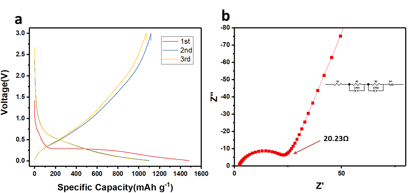 - we use stober method to synthesis the organic silicon sphere as precursor then we obtain uniform SiOx-C sphere with the diameter of 400 nm through a one-step calcination. By XPS result we calculate x is around 1.81, Raman result shows that the ratio of D peaks and G peaks are relatively small, indicating the high degree of graphitization, and the carbon in the SiOx-C material perform not only as the buffer for the structure expansion/contraction but also as a conductive agent. For the electrochemical performance, SiOx-C sphere has good rate performance and high reversible specific capacity which is over 1000 mAh g-1 under the current density of 100 mAh g-1, and under the current density of 1A g-1, it still has the specific capacity of 686.2 mAh g-1 after 300 cycles with the capacity retention of 97%. The synthesis of the SiOx-C sphere is low cost, simple environmental friendly has the potential to be magnified to industrialized scale.