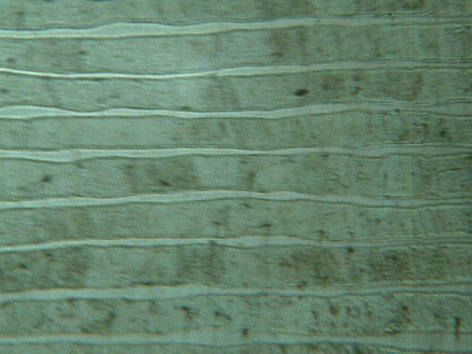 由于大马士革钢的夹层结构,在经过压花和磨削后,其表面会出现水波纹。在使用该种钢材制作厨刀时,水波纹具有很强的装饰性,同时由于厨刀表面存在水波纹,在切割食材的时候,食材与厨刀的表面之间存在着空隙,这样可以使食材可以顺利地从厨刀表面掉落而不会粘在其表面。