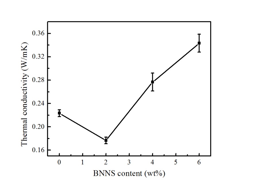However, the thermal conductivity of BNNS/TPU composites with 6wt% pure boron nitride nanosheet added in casting process was 0.34 W/m·K.