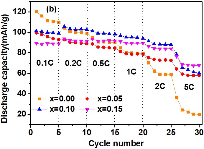 其他掺杂如Ni和Cr等元素可以利用其较多价态的变化使材料的比容量提高,掺杂Fe元素有利于材料导电性能的提高,而掺杂Mn元素有利于材料稳定性的提高。