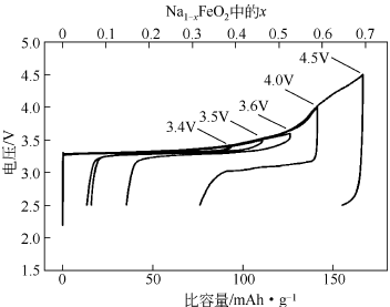 图1.4 NaFeO2正极材料在不同截止电压下比容量-电压曲线