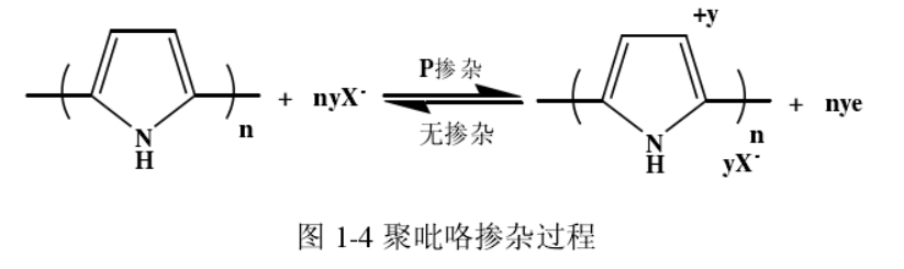 导电聚合物是一类分子主链具有大π键的高分子。自二十世纪七十年代起,这类电致变色材料才被广泛研究。导电聚合物主要有聚呲咯,聚噻吩,聚苯胺等及其衍生物[7]。