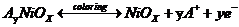 阳极电致变色材料:正电位下被氧化而着色,负电位被还原而褪色。主要包括Ni、Co、Cu等氧化物及其水合物等,阳极电致变色原理如公式(1.2)所示: