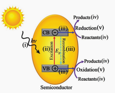图1.3半导体上典型光催化过程的示意图