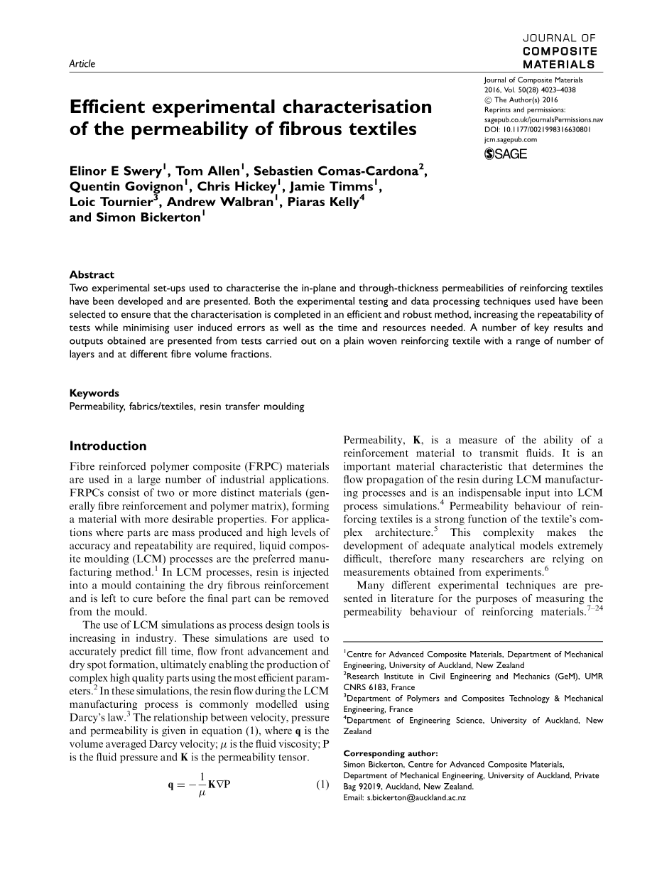 本文介绍了两种渗透率测量系统。它们是由先进复合材料中心在近年来开发的,以一种高效和强大的方法在实验中表征平面和厚度方向的纤维增强材料的渗透率。在测量系统和数据处理技术发展过程中,将重被放在增加测试可重复性及避免用户引起的错误上。用于实现这一点的技术已经开发完成,并且通过研究获得了一些关键成果。
