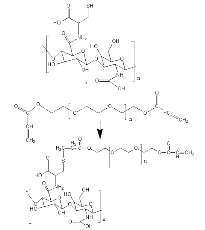 Preparation of thiol hyaluronic acid and acylated polyethylene glycol hydrogel