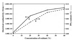 At present, only polyvinylidene fluoride(PVDF) is a piezoelectric polymer that can be commercialized. It is easy to be processed into large-area membranes with good flexibility and quick piezoelectric response. PVDF is a crystalline polymer. It can form five kinds of crystal forms, among which β phase crystal has high piezoelectric activity. the technology of electrospinning makes fiber been stretched and polarized, by which PVDF piezoelectric fiber membranes with high β phase content can be produced. Piezoelectric generators based on PVDF have been widely studied. Generally, the electrodes of piezoelectric generator based on PVDF are made of metal material which has high modulus and small deformation, making the sensing and energy absorption performance of piezoelectric generator weak. Polypyrrole (PPy) is a conductive polymer with high conductivity and good biocompatibility, which is easy to be produced. The vapor phase polymerization is to polymerize the molecules at the solid-gas interface of the matrix, which can produce dense membranes. In this paper, PVDF is electrospinned into fiber membranes, and pyrrole is polymerized on the surface of membranes by vapor phase polymerization to make flexible electrodes. The effect of oxidant content on the conductivity and mechanical performance of the electrodes is studied.