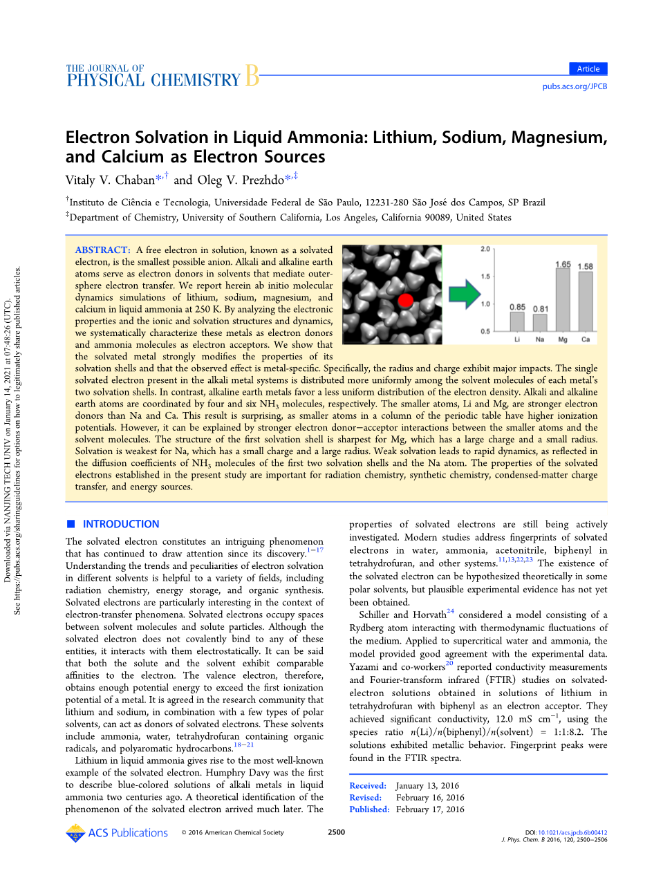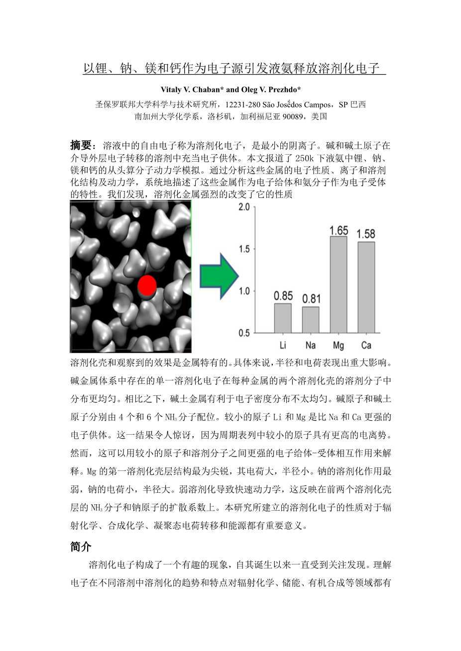 以锂、钠、镁和钙作为电子源引发液氨释放溶剂化由子外文翻译资料