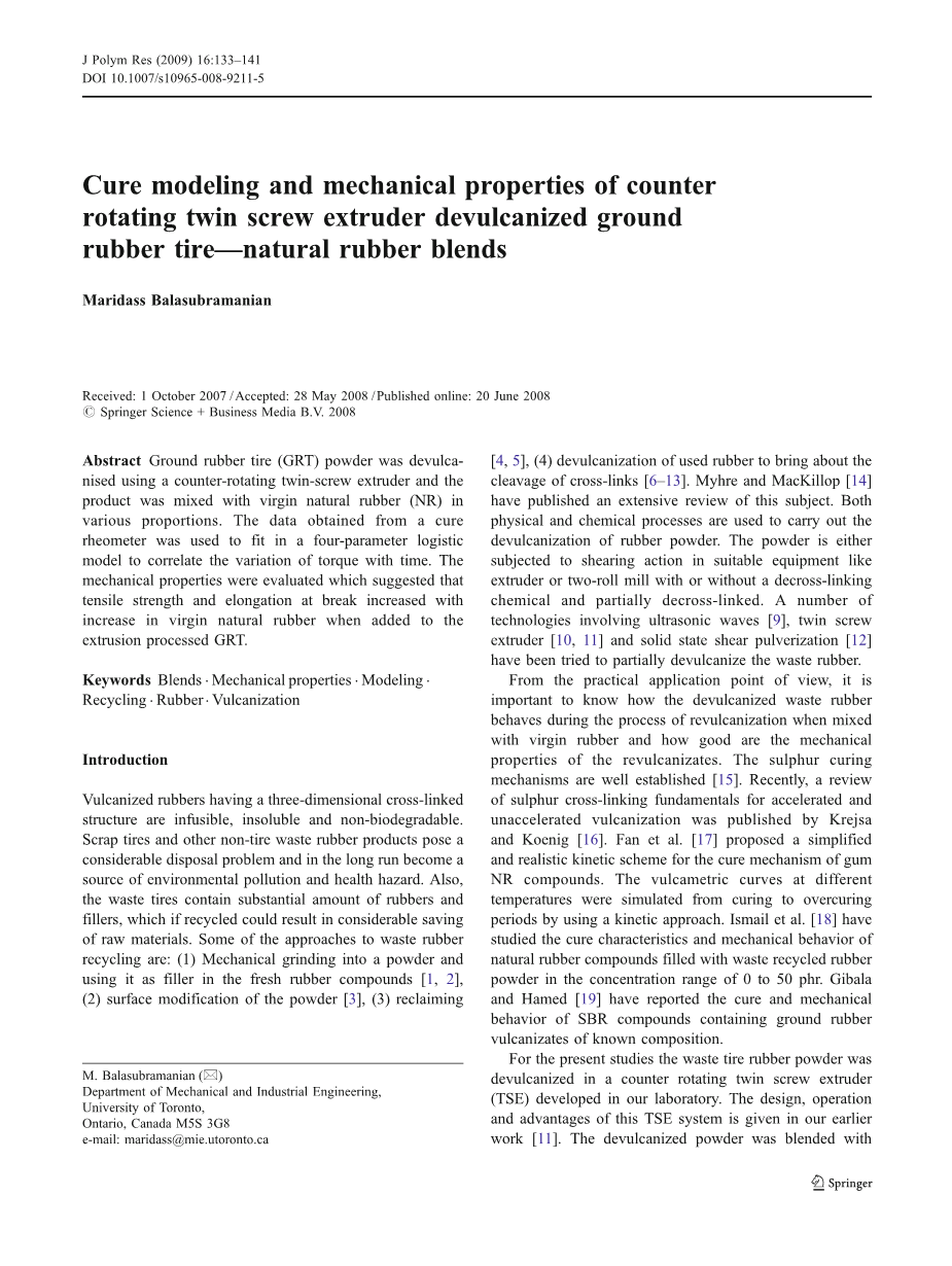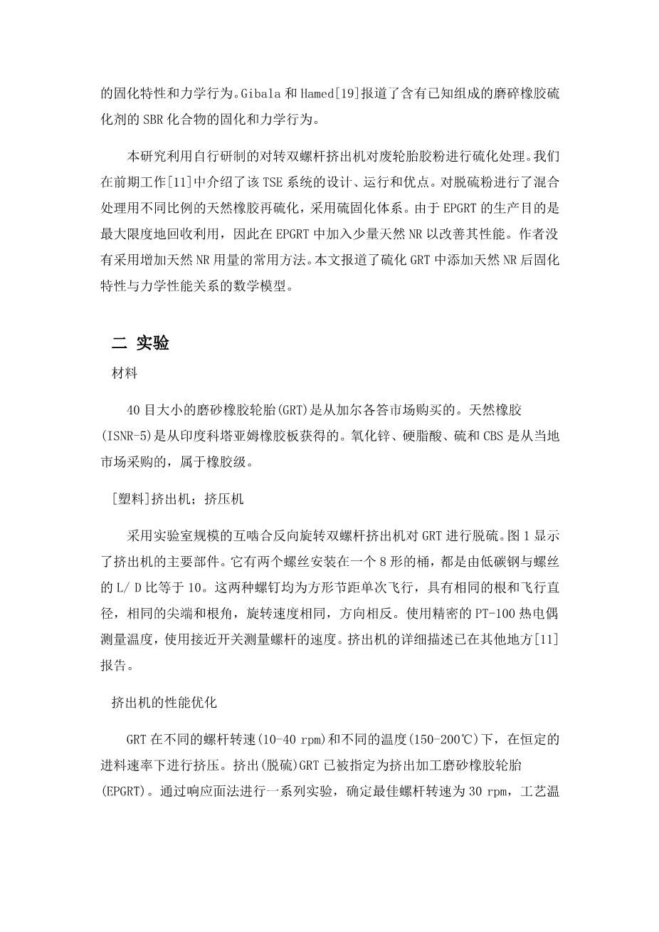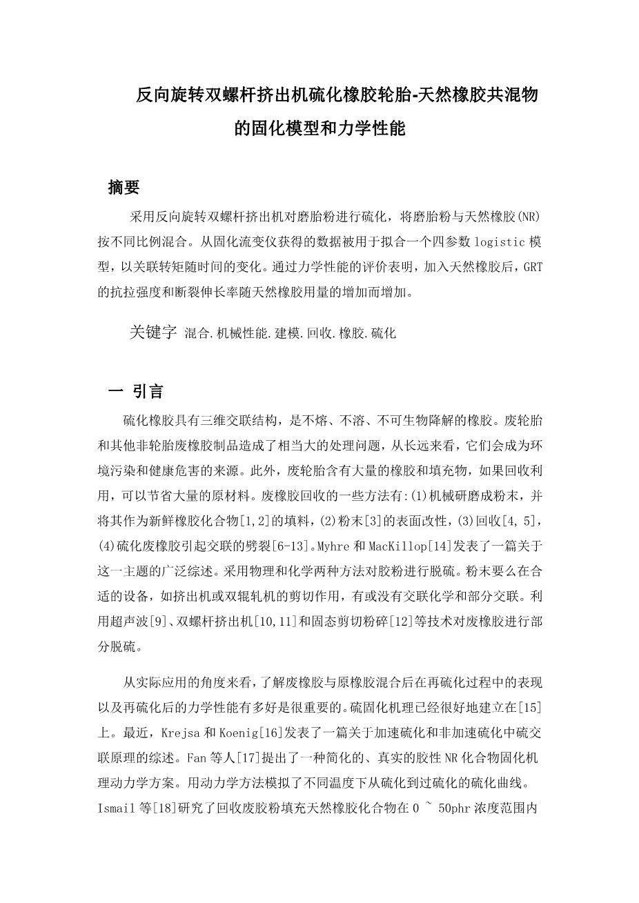 反向旋转双螺杆挤出机硫化橡胶轮胎-天然橡胶共混物 的固化模型和力学性能外文翻译资料