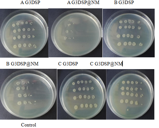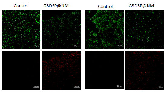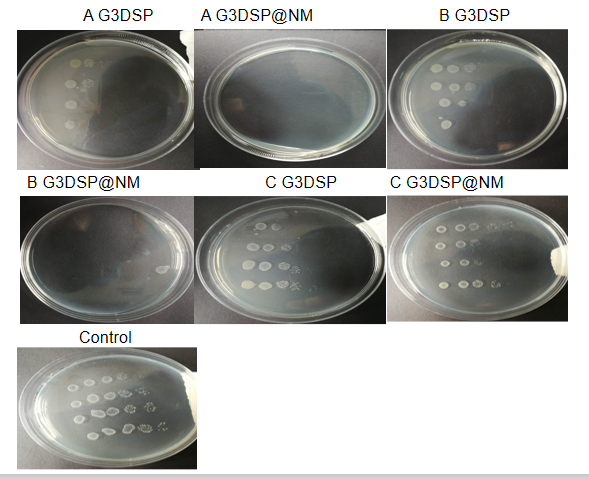 对本文过对于大肠杆菌和金葡萄球菌进行的抗菌性能测试表明G3DSP@NM纳米凝胶比G3DSP纳米凝胶对抗菌效果更加明显,并且得到的G3DSP@NM纳米凝胶抗菌剂抗菌效果明显。且使用场发射电字扫描显微镜观察细菌死亡时的形貌特征,更直观察出的细菌死亡后的具体形态。并使用共聚焦电子显微镜通过荧光染色,观察细菌实质死亡情况。