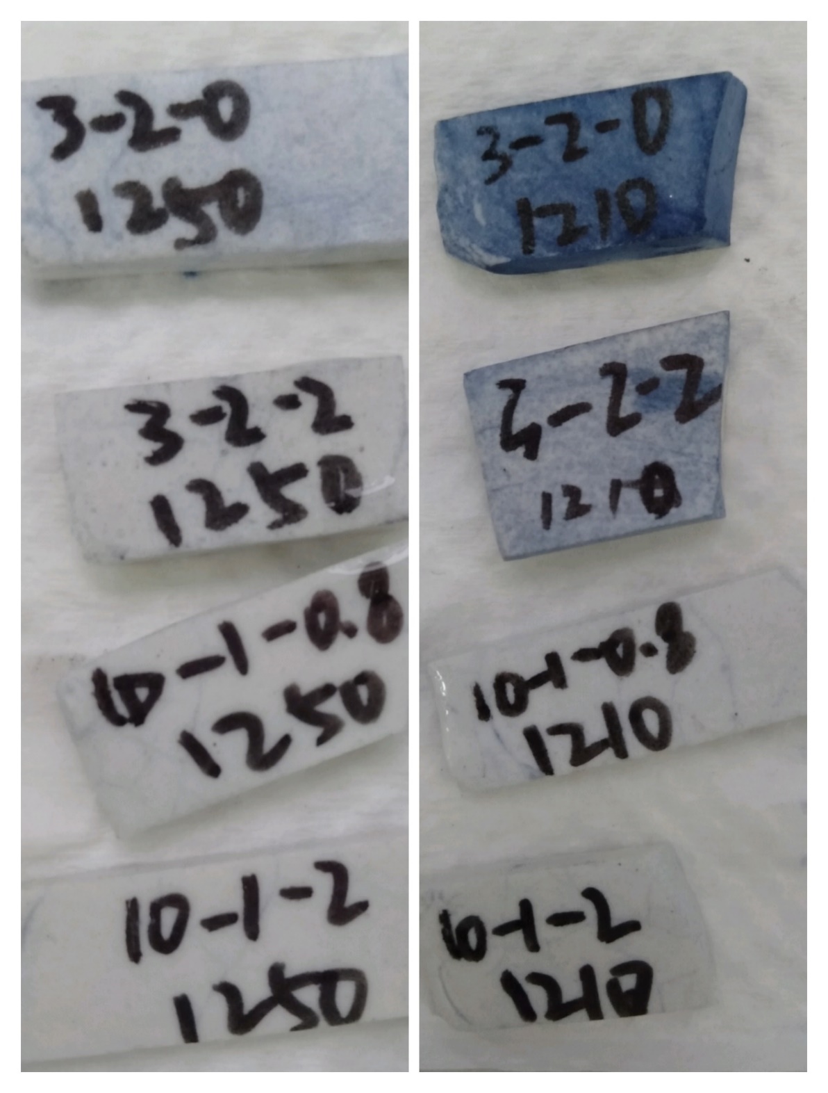 Based on the strengthening mechanism of magnesia reinforced porcelain, this project intends to prepare reinforced porcelain materials by adding talc, aluminum trifluoride, titanium dioxide and other additives to traditional ceramic formulations, and the samples are prepared at 1210 ° C. The samples were sintered at 1230 ° C, 1250 ° C, and 1280 ° C. The prepared samples were tested for mechanical strength and thermal shock resistance. The effects of additives and their contents on the properties of the reinforced porcelain were investigated to improve the mechanical strength and thermal shock resistance. Higher strength and better thermal shock resistance mean longer service life, lower cost and better economic efficiency. It also saves resources and energy and is more environmentally friendly.