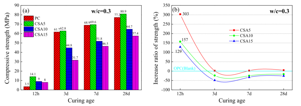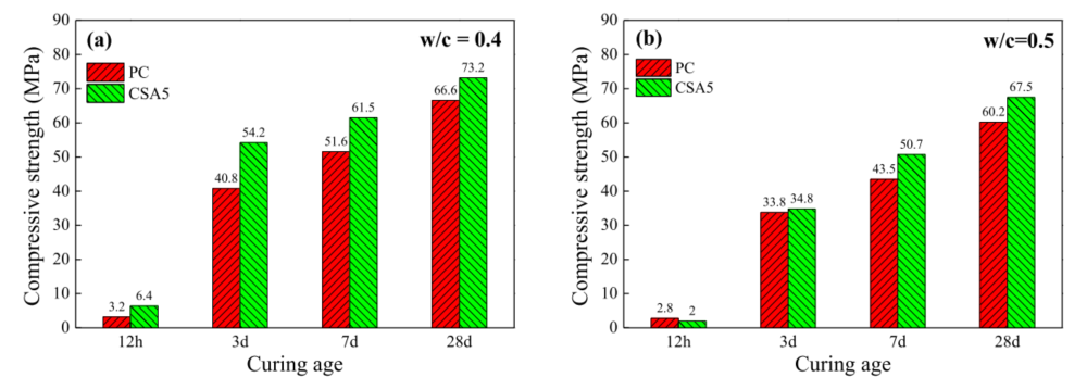 Keywords: Portland cement; Calcium sulphoaluminate cement; Water-cement ratio; Early strength; Compressive strength