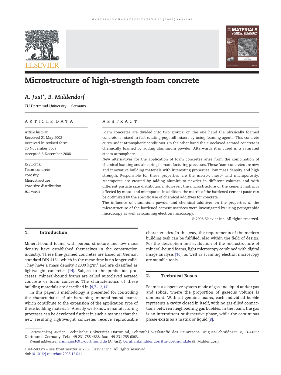 - These foam concretes are new and innovative building materials with interesting properties: low mass density and high strength.