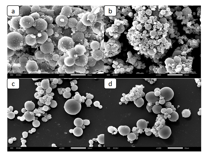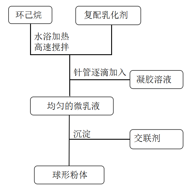 微乳液[18-21]通常由溶剂和水(或水溶液)、表面活性剂,助表面活性剂等成分组成。 在这个系统中,两种不混溶的连续介质被表面活性剂两亲性分子分隔成微小空间,形成一个微反应器,尺寸可以控制在纳米范围内,反应物在系统中反应生成固相颗粒。由于微乳液可以比较精确的控制材料的的外观形貌和粒径,因此能够很好的控制纳米粒子成核,生长,凝聚以及团聚的过程,从而得到的纳米粒子表面被覆盖一层表面活性剂,并且具有一定的凝聚结构。 使用铝溶胶和可溶性淀粉作为水相,通过交联反应前驱体球在油相中形成。