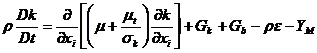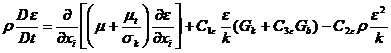 标准k-ε模型的方程包括湍流动能方程k和扩散方程ε: