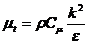 ,湍动能k与耗散率ε的湍流普朗特数分别为